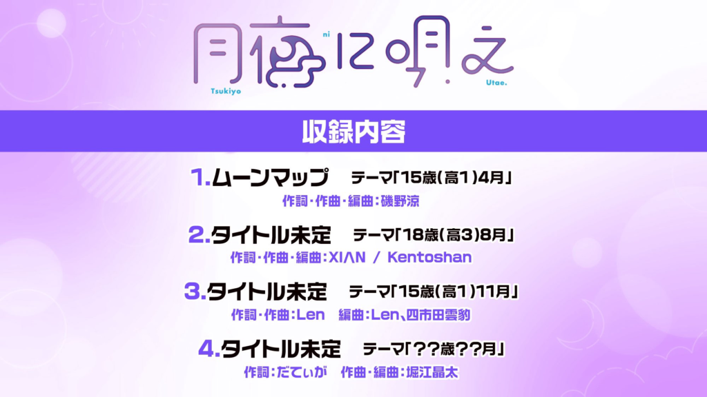 楽曲派もニコニコのラインナップで話題沸騰の「太陽月夜」。ヒゲドライバーさんや滝澤俊輔さんなど、アニソンファンにも嬉しいラインナップの2nd EPは2024年7月3日リリースとのことです。