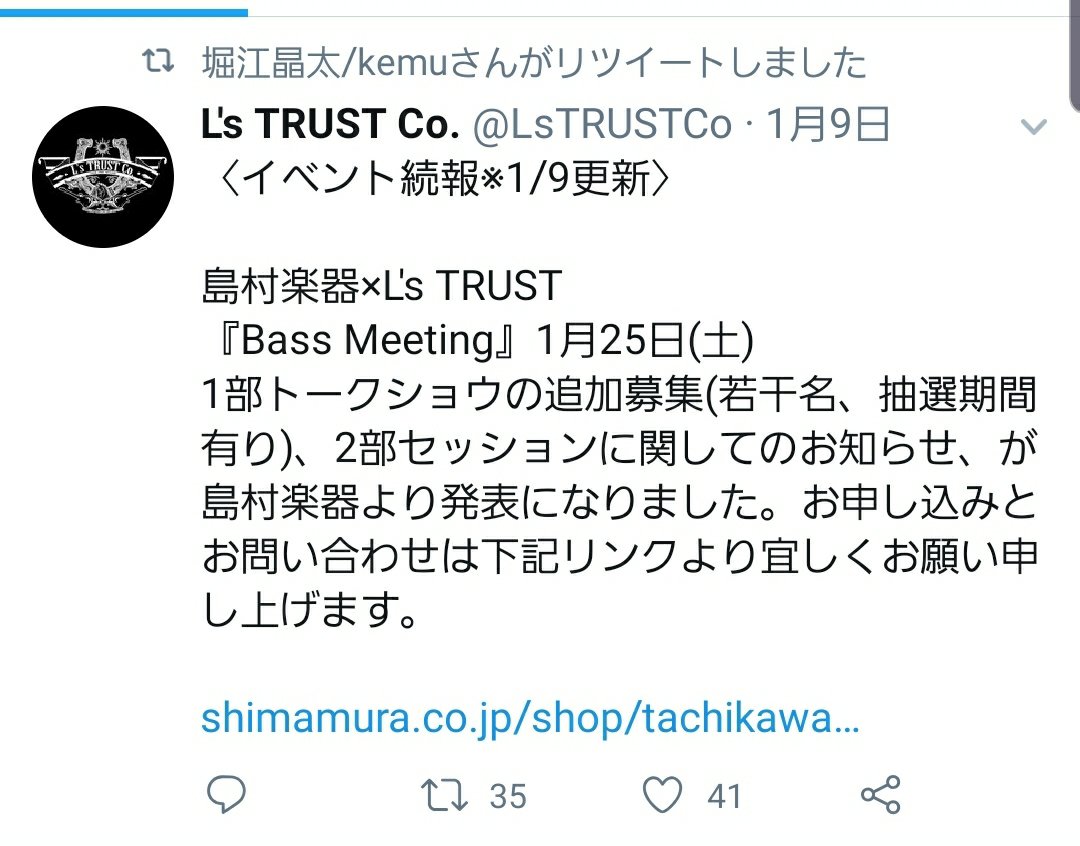 URLをコピーしました! 25日開催の島村楽器『Bass Meeting』に関する情報をリツイートされました。 堀江晶太メモ 憧れは尾崎豊 共有:クリックして Twitter で共有 (新しいウィンドウで開きます)Facebook で共有するにはクリックしてください (新しいウィンドウで開きます) 関連 全ての記事 この記事が気に入ったら フォローしてね! Follow @hs_news_update よかったらシェアしてね! URLをコピーしました! URLをコピーしました! 【ガスト×堀江晶太】堀江晶太/kemuさん カフェレストラン ガストからのお年玉を狙うも抽選期限を過ぎてしまっている 【ガスト×山芳製菓×堀江晶太】堀江晶太/kemuさん 生放送中にわさビーフとガストのコラボお菓子の宣伝をRTしてしまう #PGR5周年 関連記事 【田淵智也×堀江晶太】田淵智也生誕40周年ソロカバーアルバム収録「デネブとスピカ」にリアレンジ&ゲストボーカルで参加! 2025年11月2日 【棗いつき×草野華余子×堀江晶太】#M3秋2025 リリースの草野華余子提供新曲「Rage Against The Euphoria」にギターで参加! 2025年10月18日 【じん×石風呂×ゆーまお×岸田勇気×堀江晶太】ネクライトーキー初主催フェスにてチーム自主休講として出演! 2025年10月10日 【にゅ~カル派!✕大橋彩香✕sabio✕峰月律✕堀江晶太】トークセッション「にゅ~カル派!vol.1」が開催! 2025年10月10日 【悠佑(いれいす)×堀江晶太】いれいすきってのロックシンガーが”ホリロック”を歌い回す!アルバムリード曲「limbo?」提供! 2025年10月10日 【七海うらら×暗殺教室×草野華余子×堀江晶太】BLACK ALBATROSS編曲「Infinity karat / 七海うらら」ギター演奏! 2025年10月3日 【速報】世界トップVTuberと世界トップボカロPが禁断のコラボ!じん×堀江晶太によるmiComet新曲『Lollipop』公開! 2025年10月2日 堀江晶太 × 星銀乃丈まさかの師弟対決!?12月、大阪吹田にてアニソン塾開講! 2025年9月24日