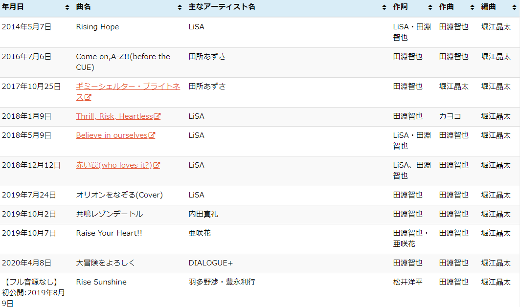 というわけで、田淵智也さんと堀江氏の共作楽曲を一覧で掲載させていただきます。もし気になる楽曲がございましたら「オリオンをなぞる(Cover)」と「Rise Sunshine」以外はサブスクで聞けますので、ぜひ検索してみてください。